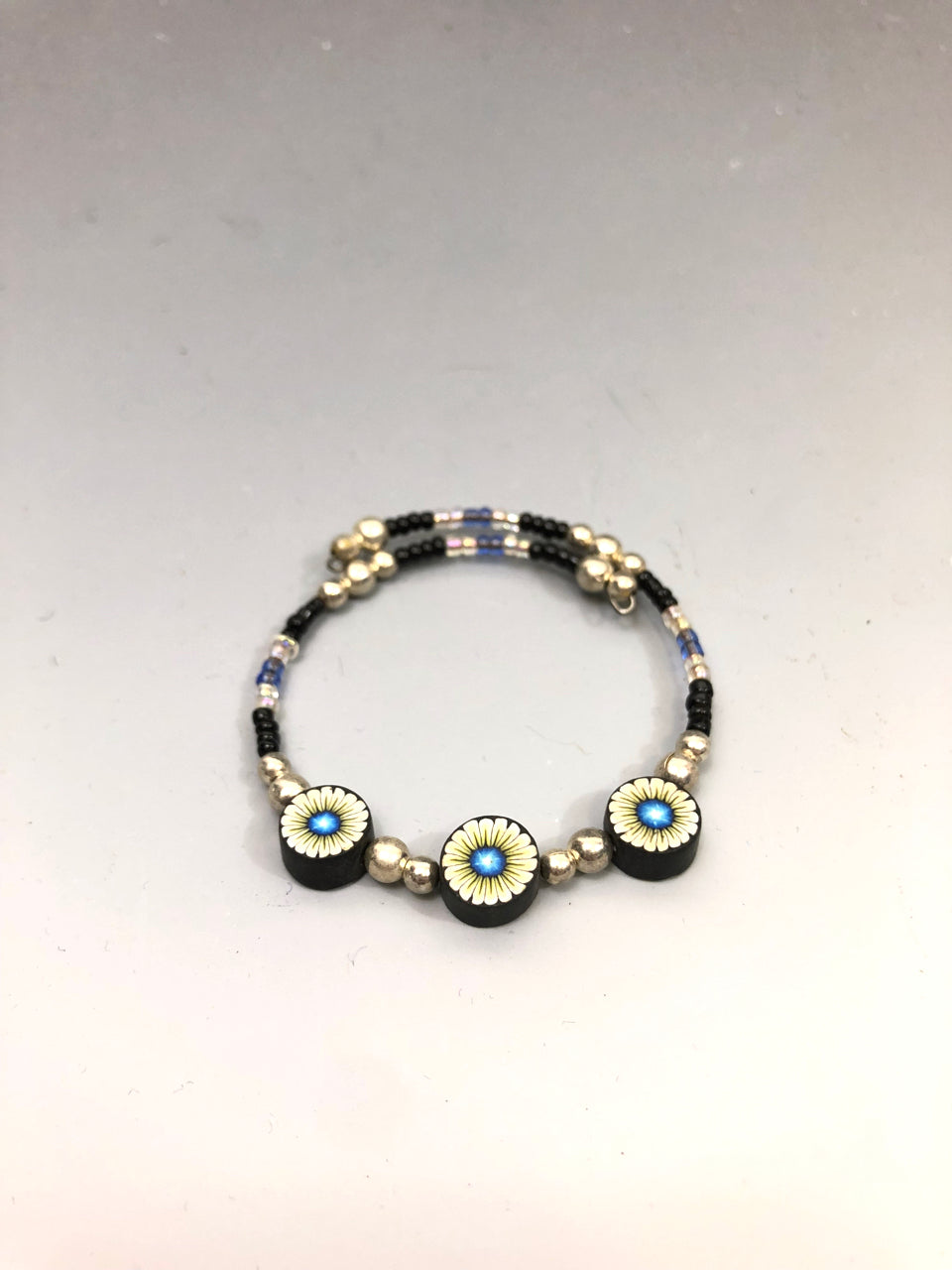 90s Beaded & Clay Bracelet (Yellow Flower Design)